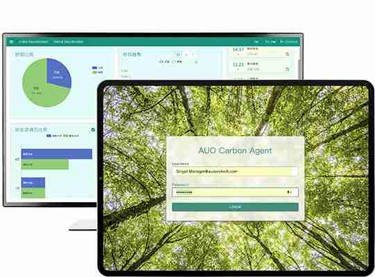 依循 ISO 国际标准建置出符合国际标准的全方位碳管理平台 (AUO Carbon Agent),,,其中温室气体盘查模组可协助客户将组织、、、、产品与供应链的碳排放源数据,,,透过系统内建的系数资料库自动计算出碳排量,,,提升整体盘查作业的效率,,,,并以此拟定长期减碳策略,,达到低碳转型、、净零碳排的目标。。。。